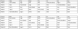 The purpose of this intense 10-week program is to increase muscular hypertrophy (growth) as much as possible in all areas of the body. It’s programmed so that you train for 3 days consecutively and then take 1 day’s rest before repeating this cycle but with slightly different exercises that have the exact same intent, to get HUGE. Take the rest days just as seriously as training days because this is where the majority of muscle is actually built, this will also allow you to push yourself more on the upcoming training days. Consecutive rest days are planned at the end of the 5-week mark so your body can fully recover before continuing to push the intensity even higher in the second phase of the program.